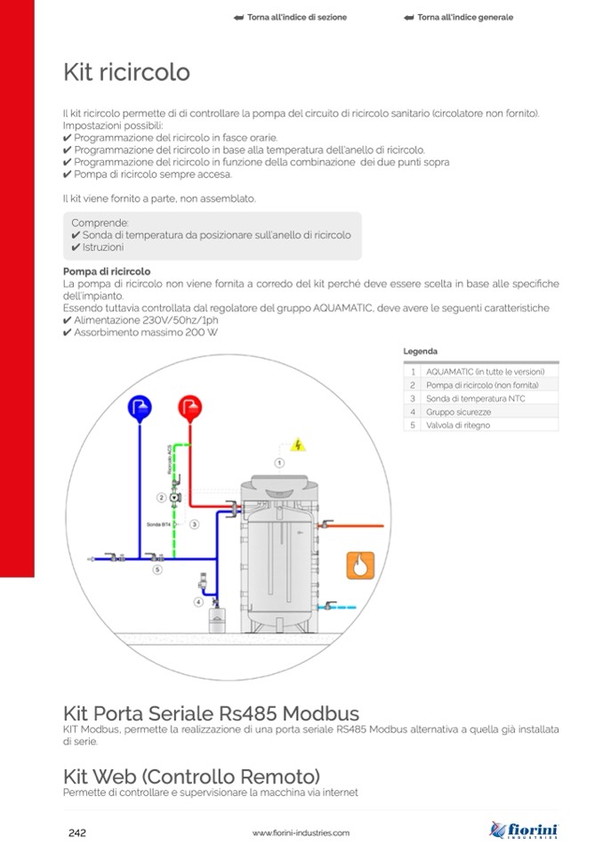 ✔ Programmazione del ricircolo in base alla temperatura dell’anello di ricircolo.