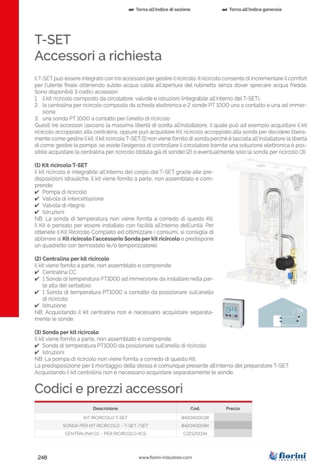 1. il kit ricircolo composto da circolatore, valvole e istruzioni (integrabile all’interno del T-SET),