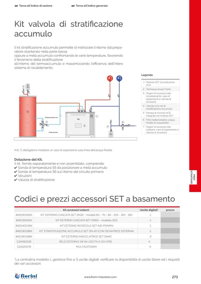 KIT STRATIFICAZIONE ACCUMULO SET DN 40 (CON DEVIATRICE ESTERNA)