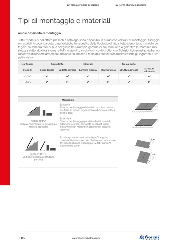 Tutti i modelli di collettore presenti a catalogo sono disponibili in numerose versioni di montaggio, fissaggio