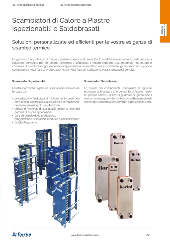 La gamma di scambiatori di calore a piastre ispezionabili, serie K e F, e saldobrasate, serie P, costituisce una