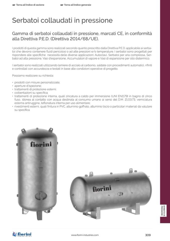 fiche necessità delle diverse applicazioni: Autoclavi, Serbatoi per aria compressa, Ser-