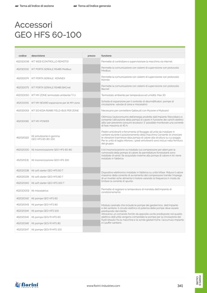 installate di serie). Se acquistato insieme alla pompa di calore in kit viene