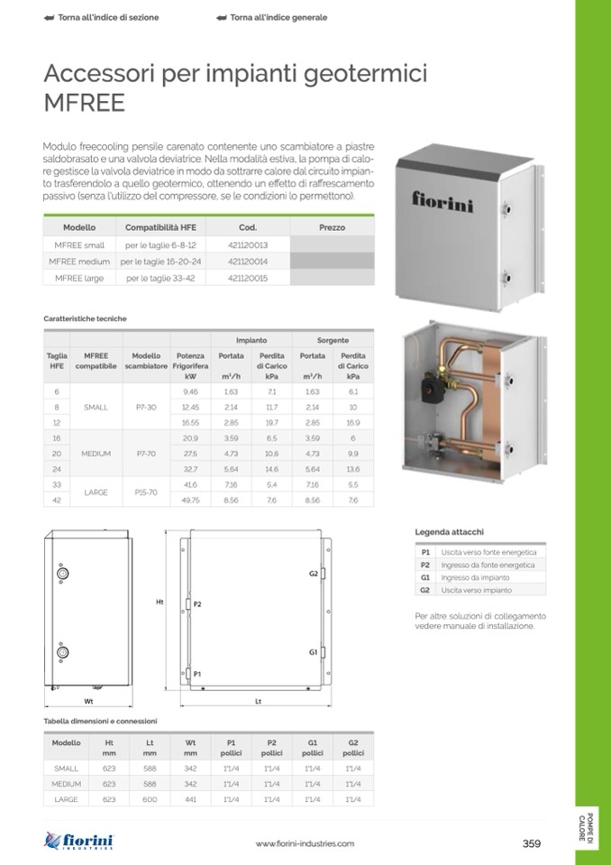 Tabella dimensioni e connessioni