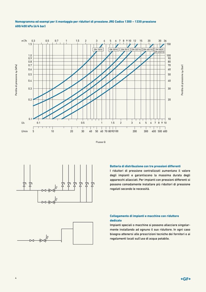 Nomogramma ed esempi per il montaggio per riduttori di pressione JRG Codice 1300 – 1330 pressione