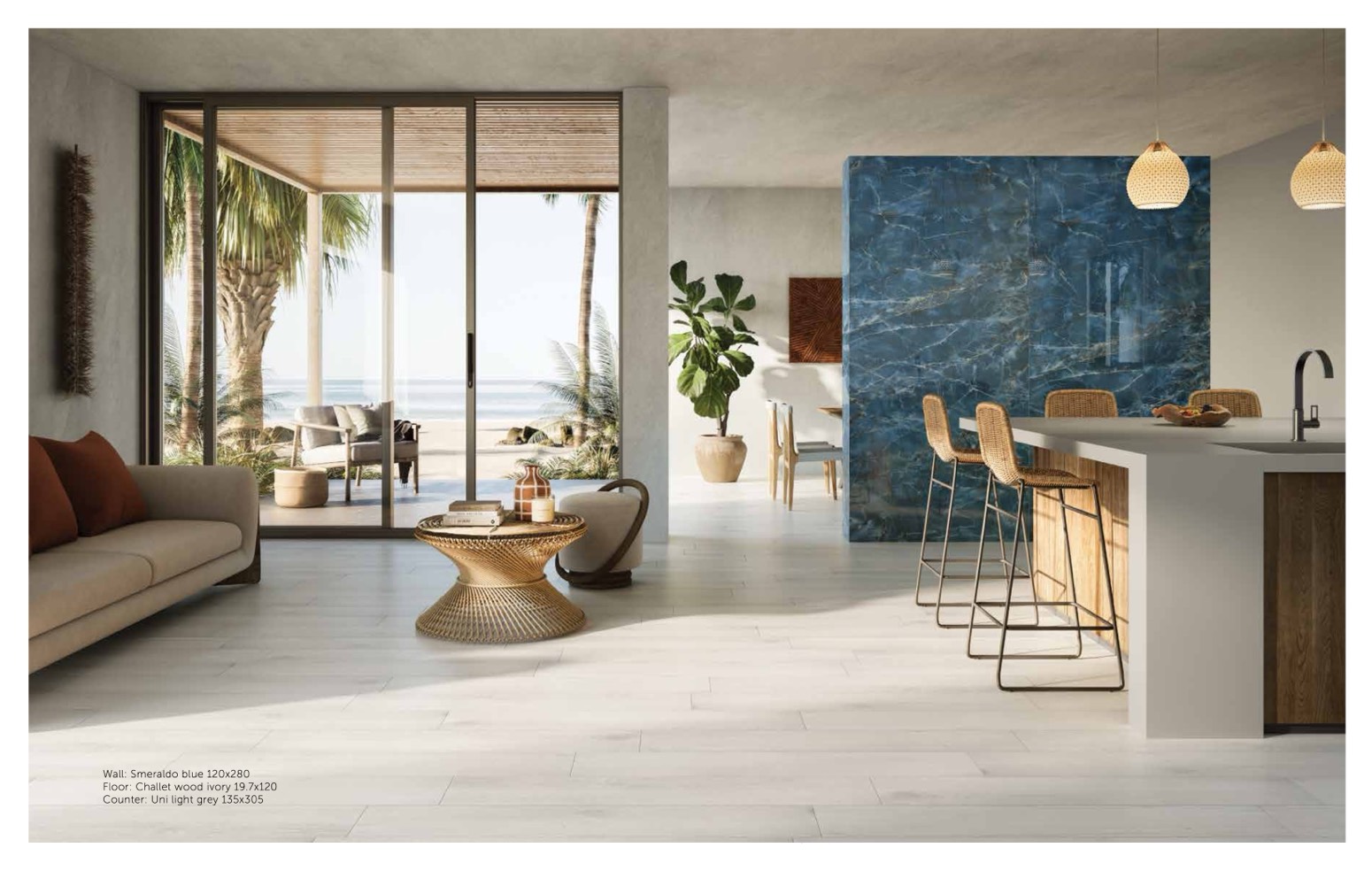 Wall: Smeraldo blue 120x280