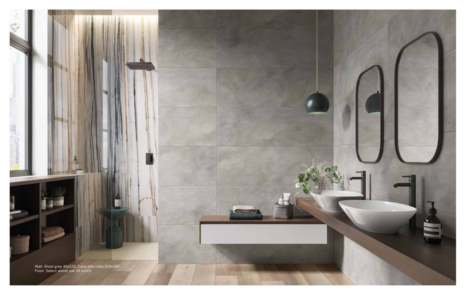 Wall: Braid grey 40x120, Calacatta cielo 120x280