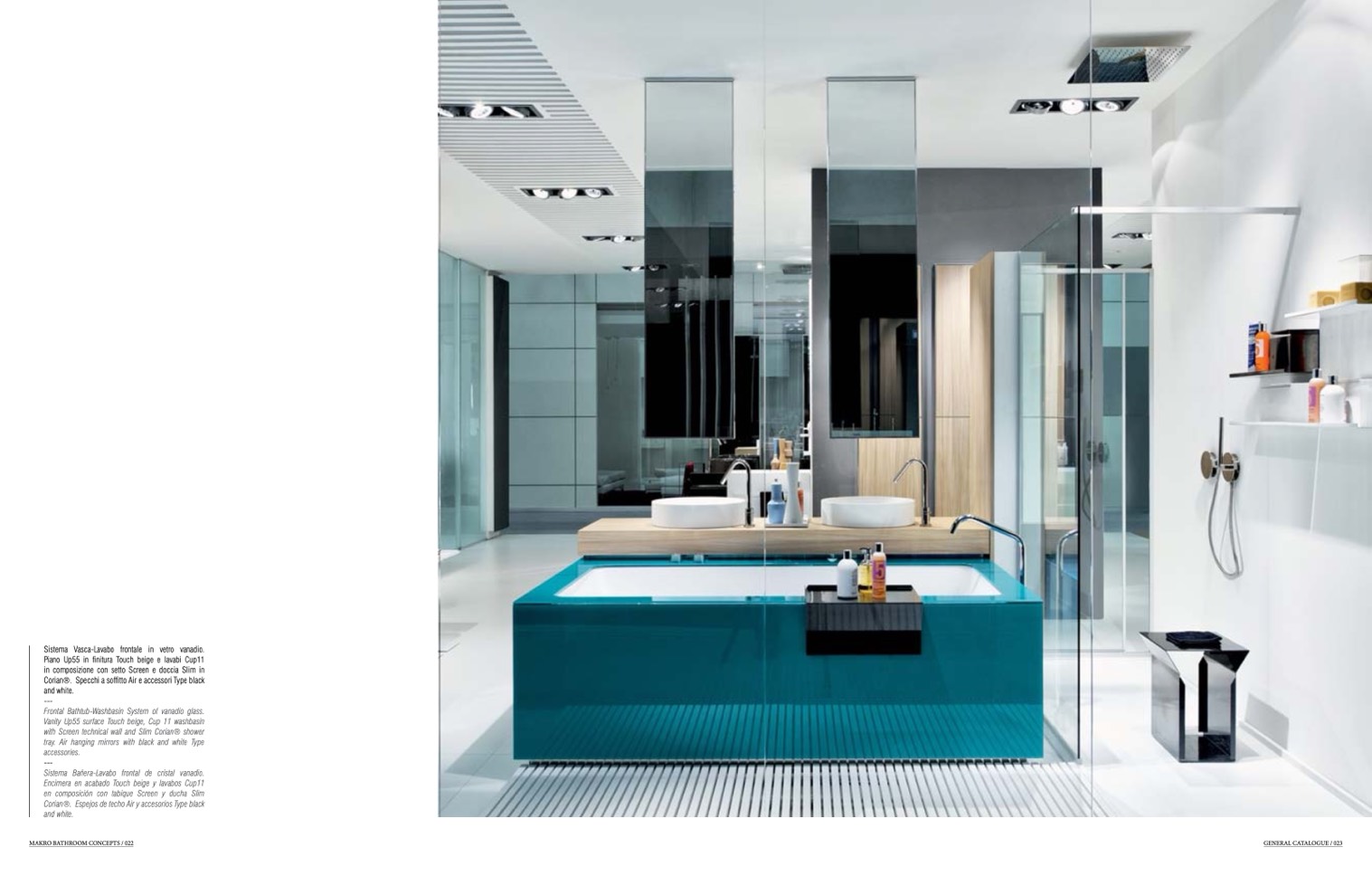Sistema Vasca-Lavabo frontale in vetro vanadio.