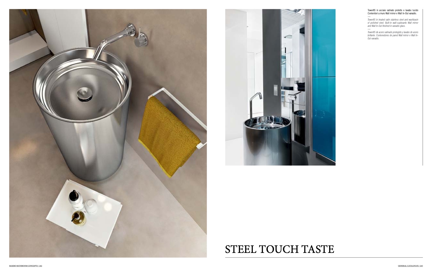 Tower85 in treated satin stainless steel and washbasin