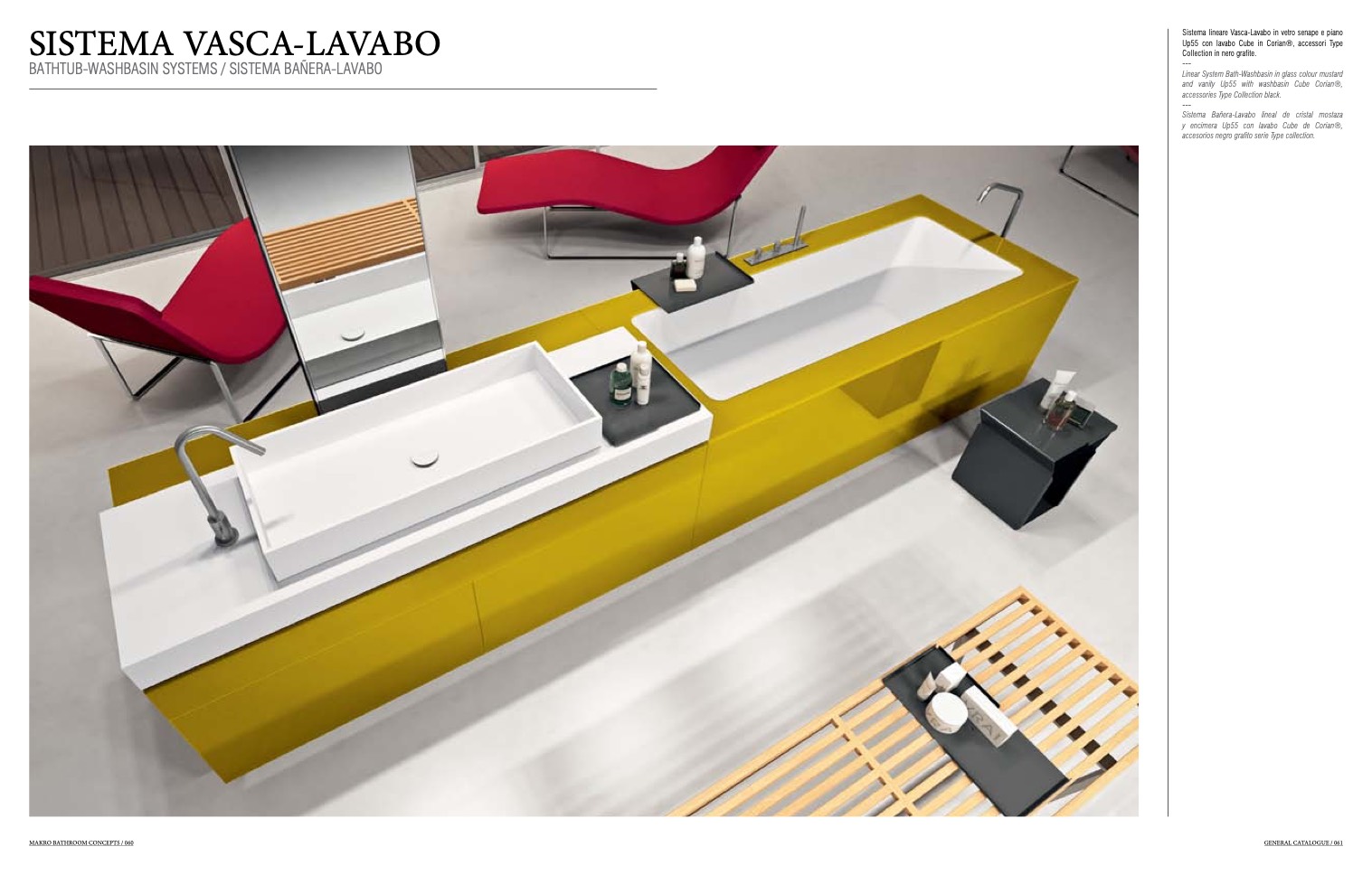 Sistema Bañera-Lavabo lineal de cristal mostaza