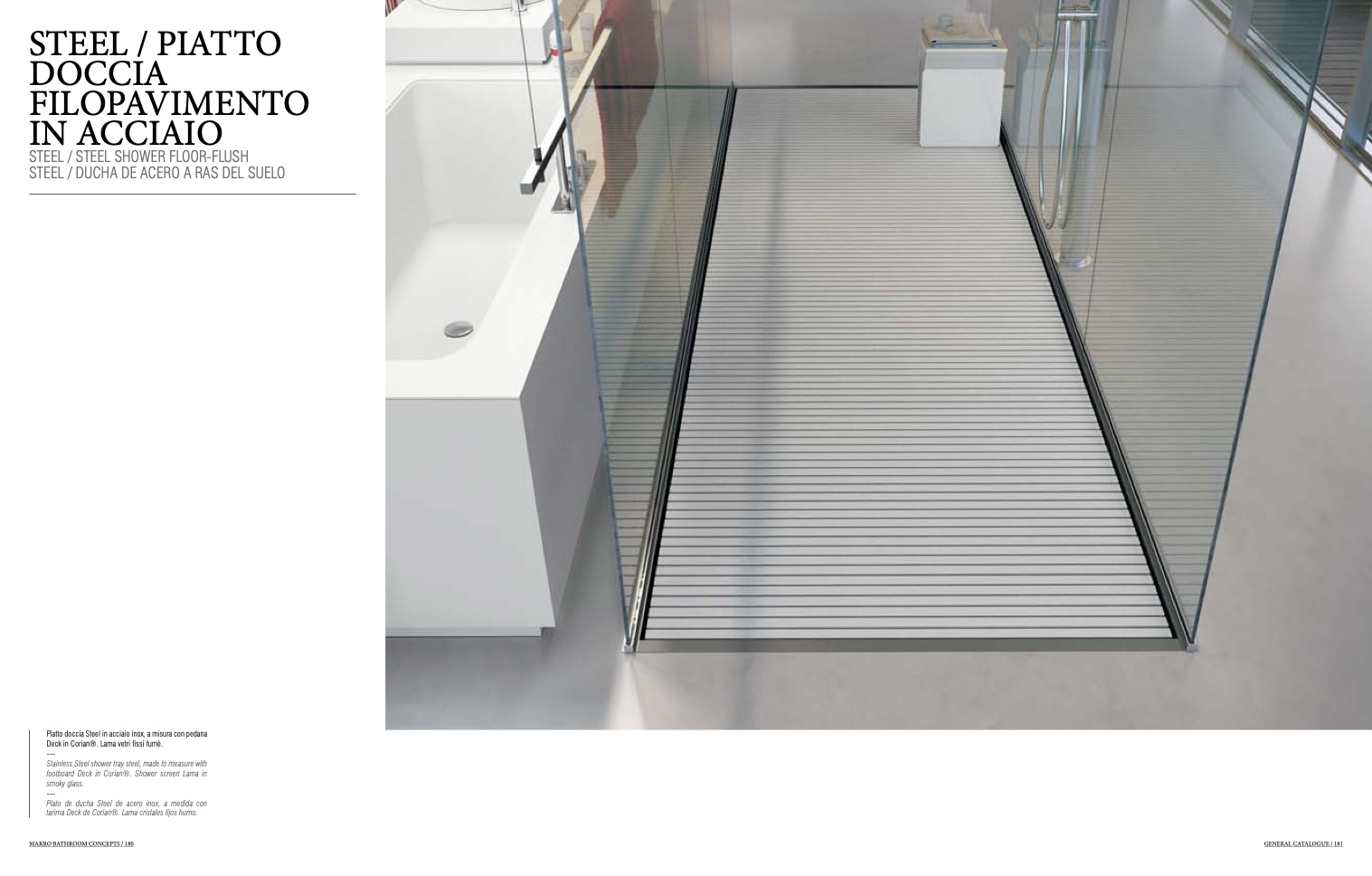 footboard Deck in Corian®. Shower screen Lama in