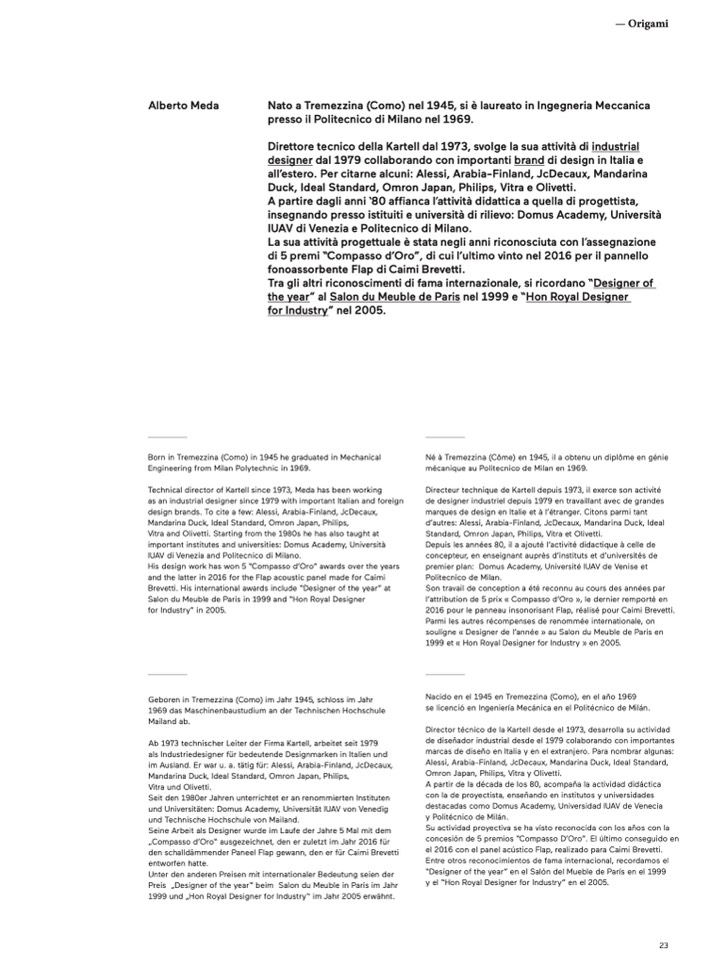 Ab 1973 technischer Leiter der Firma Kartell, arbeitet seit 1979