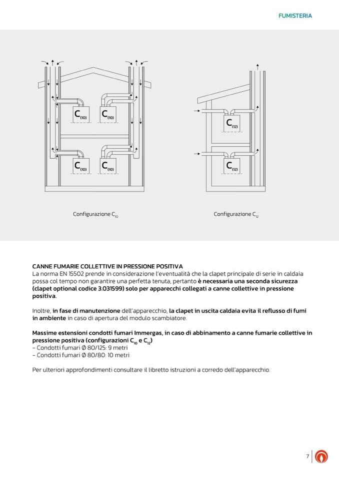 Massime estensioni condotti fumari Immergas, in caso di abbinamento a canne fumarie collettive in
