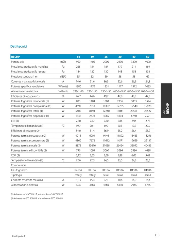 (1) Aria esterna 32°C 50% UR, aria ambiente 26°C 50% UR