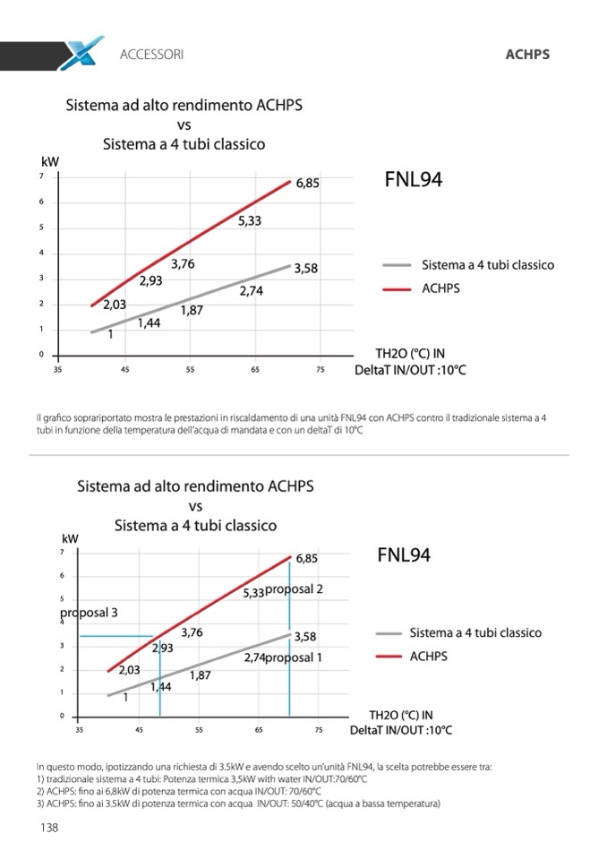In questo modo, ipotizzando una richiesta di 3.5kW e avendo scelto un’unità FNL94, la scelta potrebbe essere tra: