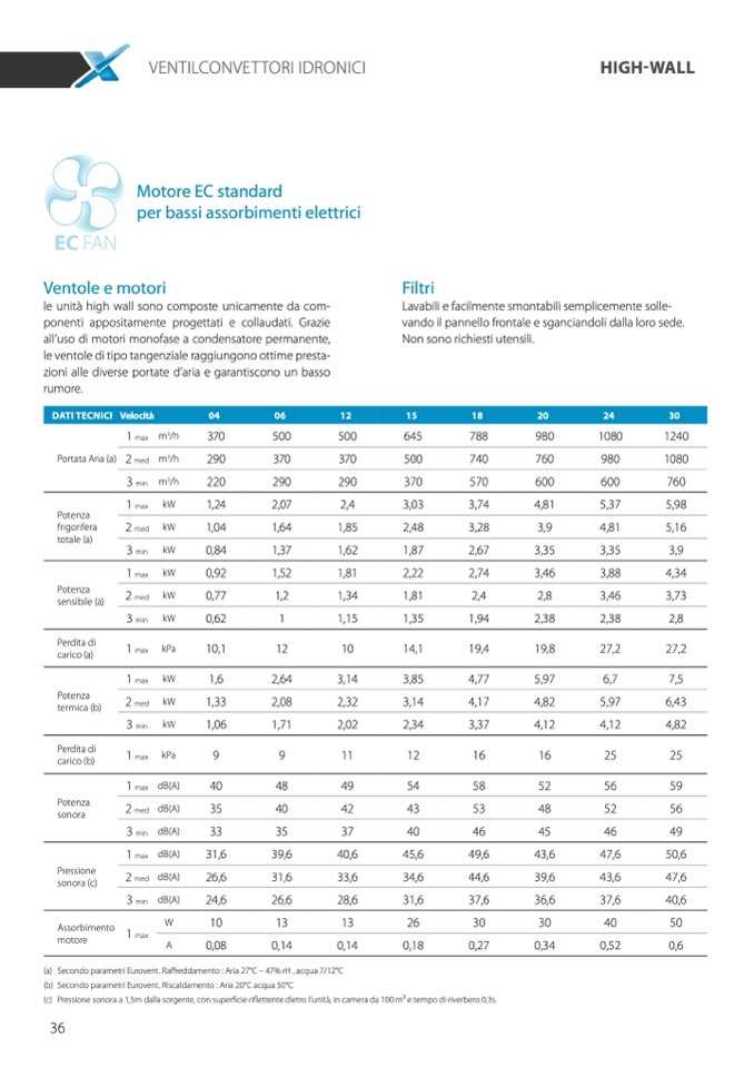 (a) Secondo parametri Eurovent. Raffreddamento : Aria 27°C – 47% rH , acqua 7/12°C