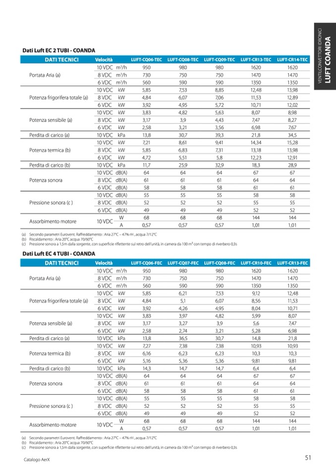 (a) Secondo parametri Eurovent. Raffreddamento : Aria 27°C – 47% rH , acqua 7/12°C
