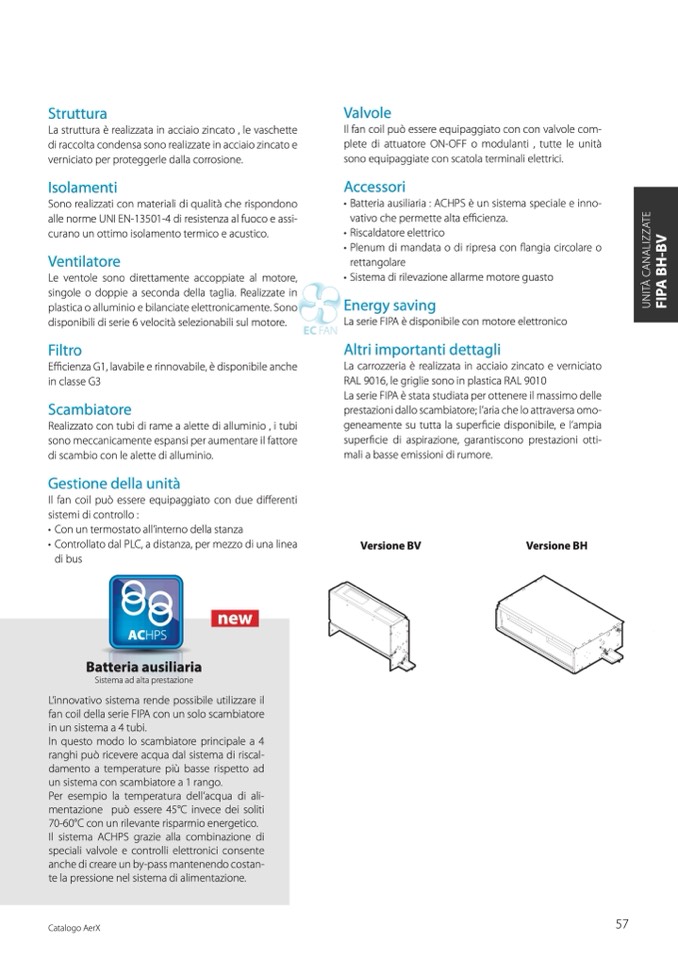 fan coil della serie FIPA con un solo scambiatore