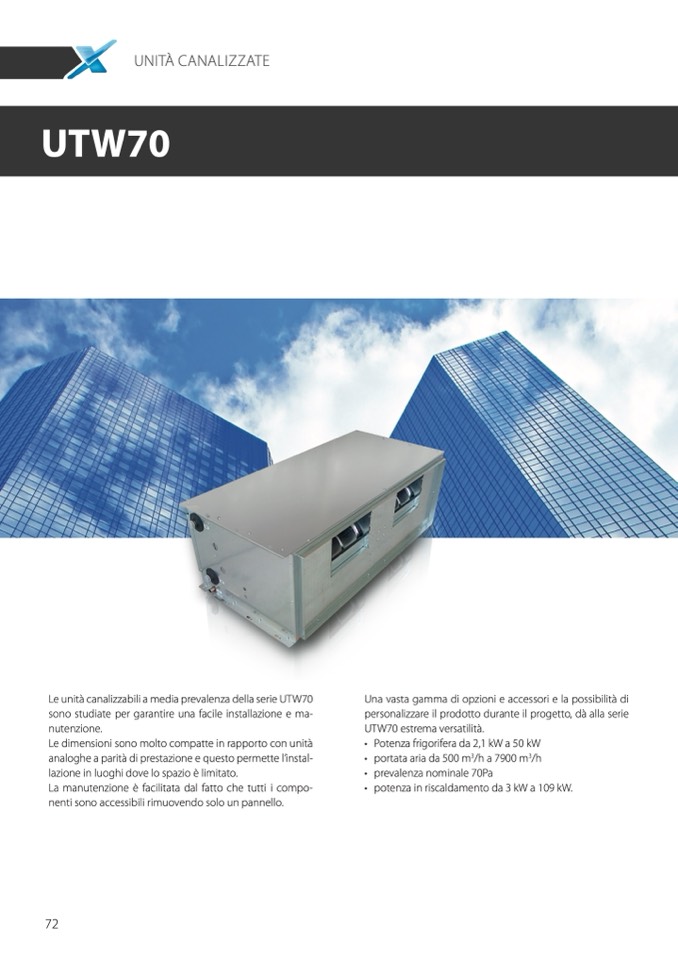 Le unità canalizzabili a media prevalenza della serie UTW70