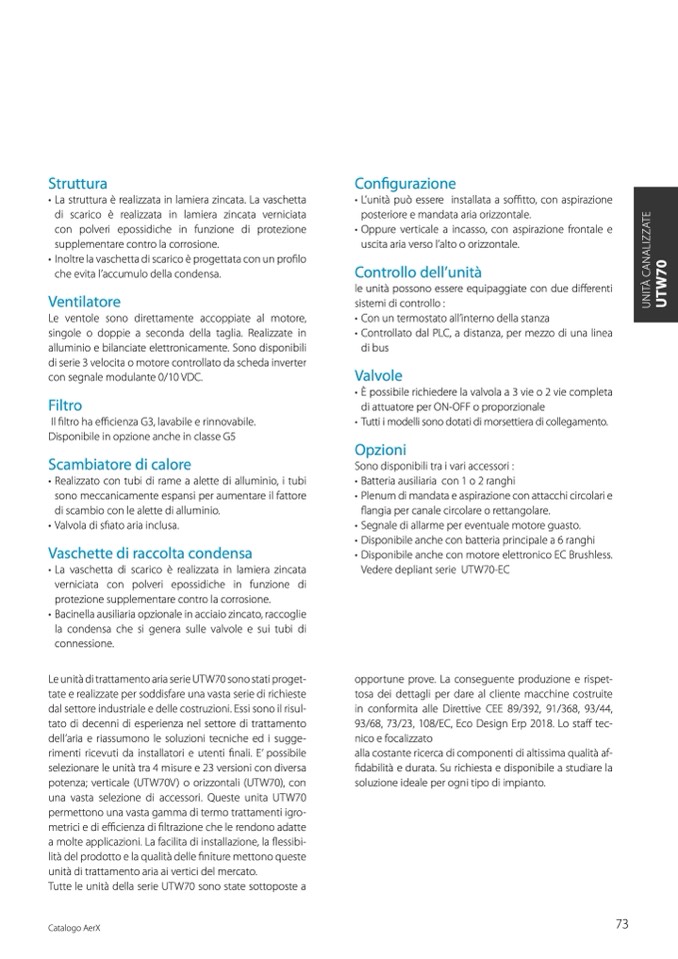 Le unità di trattamento aria serie UTW70 sono stati proget-