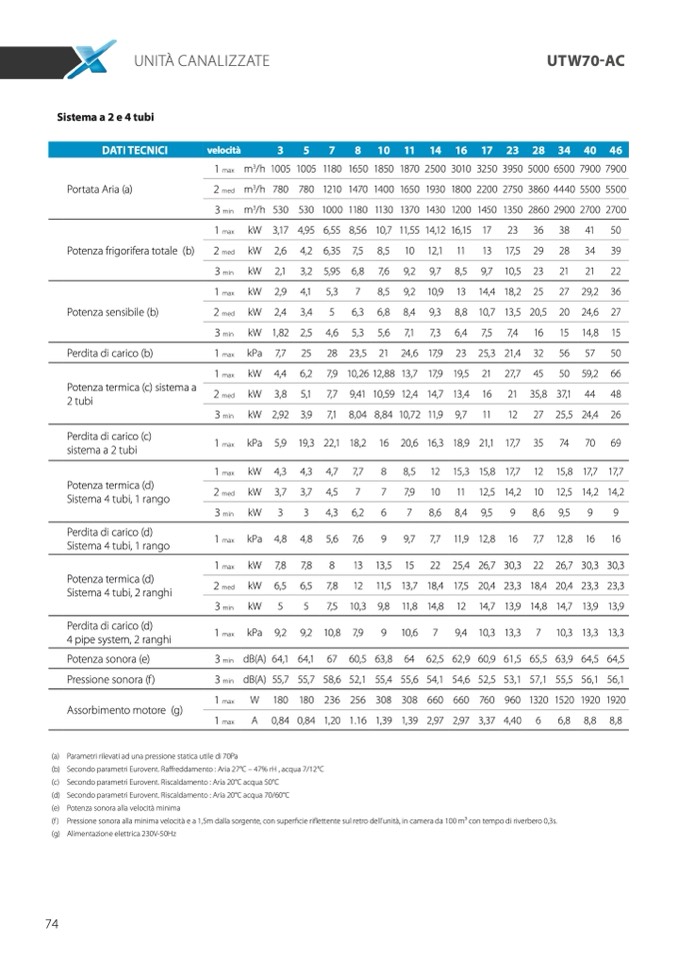 (d) Secondo parametri Eurovent. Riscaldamento : Aria 20°C acqua 70/60°C