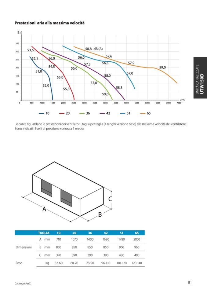 Le curve riguardano le prestazioni dei ventilatori , taglia per taglia (4 ranghi versione base) alla massima velocità del ventilatore;