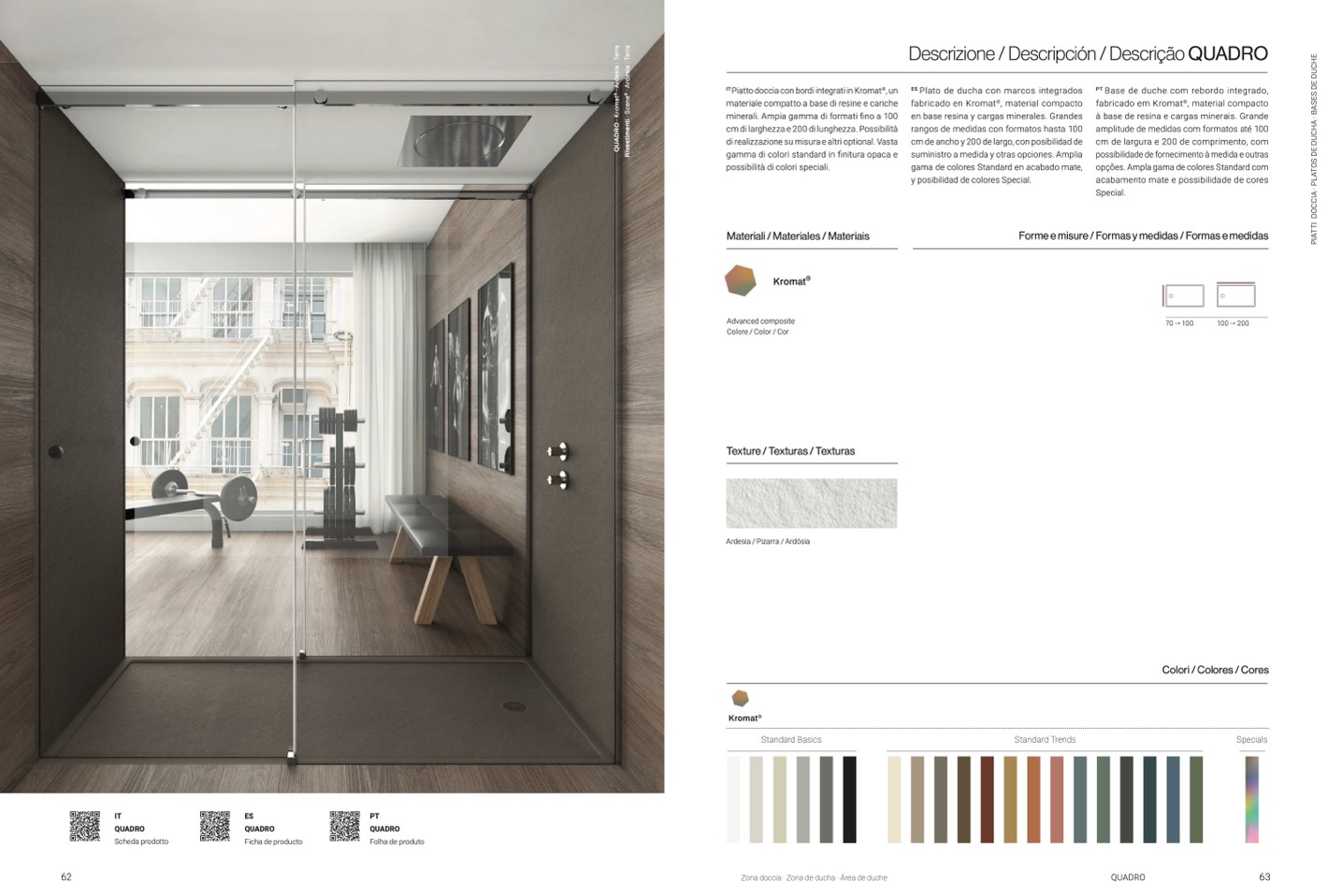 Piatto doccia con bordi integrati in Kromat