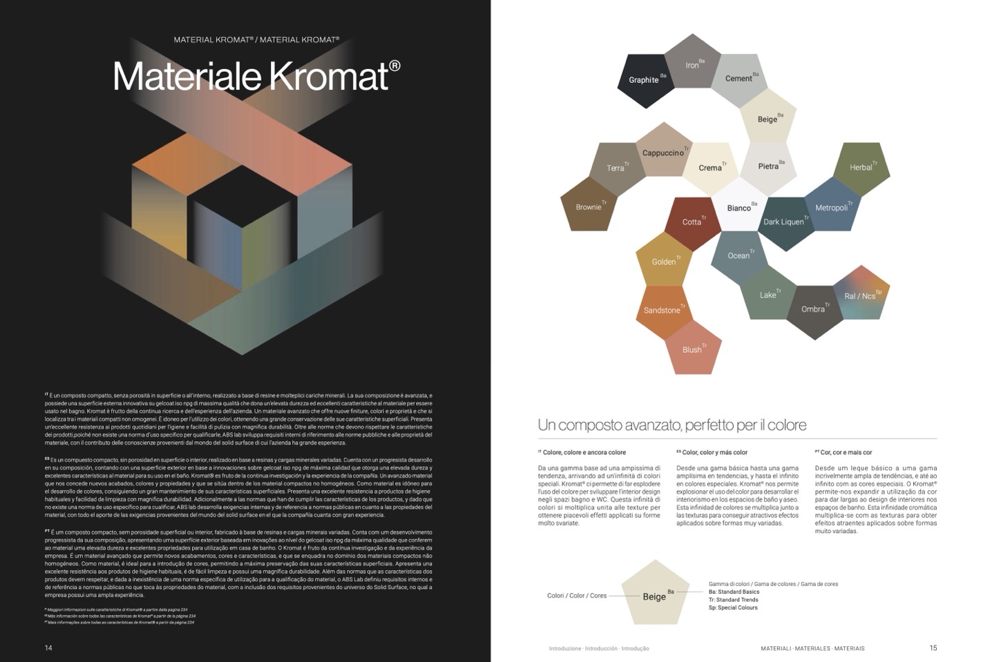 usato nel bagno. Kromat è frutto della continua ricerca e dell’esperienza dell’azienda. Un materiale avanzato che offre nuove finiture, colori e proprietà e che si
