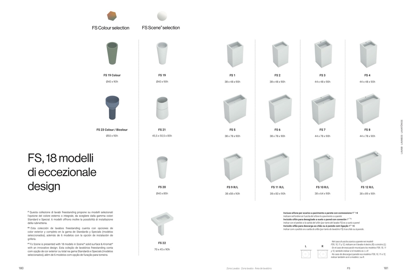 FS9, 10, 11 y 12, indicare se il lavabo è destro (R) o sinistro (L).