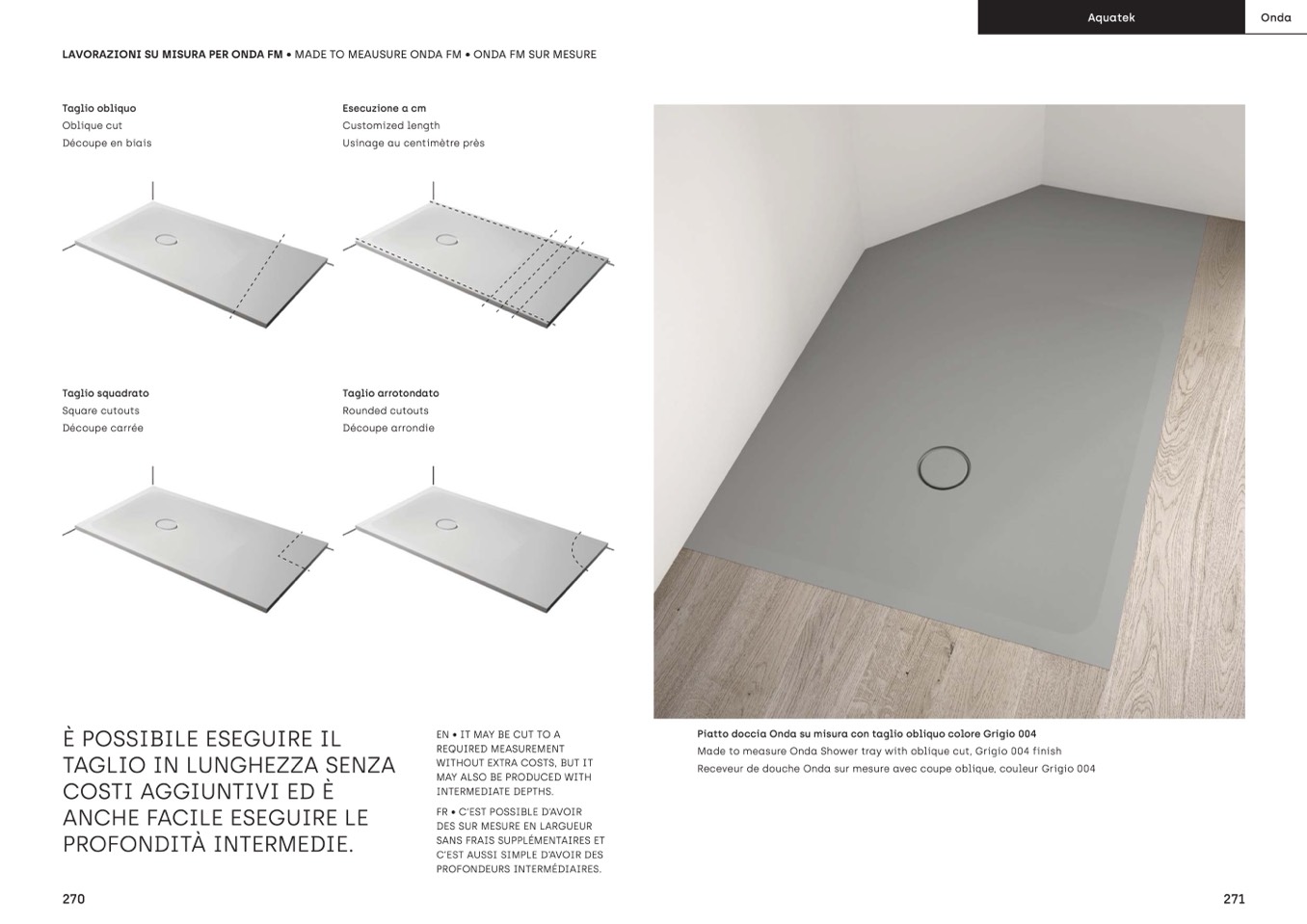 Made to measure Onda Shower tray with oblique cut, Grigio 004 finish