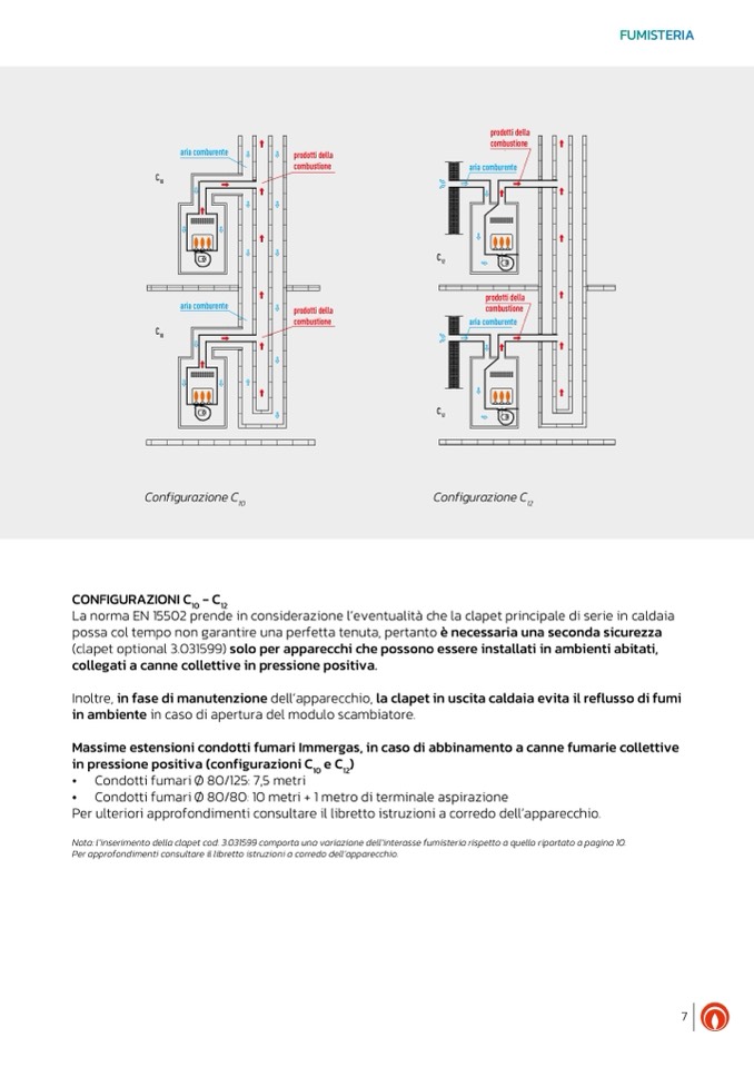 Nota: l’inserimento della clapet cod. 3.031599 comporta una variazione dell’interasse fumisteria rispetto a quello riportato a pagina 10.