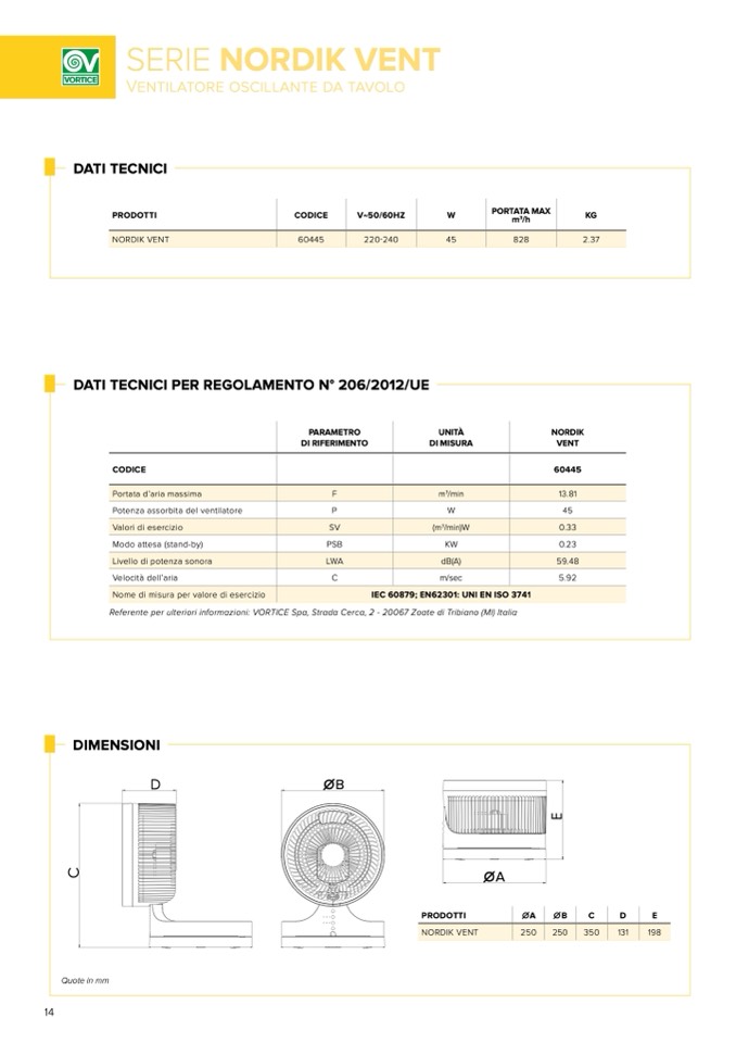 Referente per ulteriori informazioni: VORTICE Spa, Strada Cerca, 2 - 20067 Zoate di Tribiano (MI) Italia