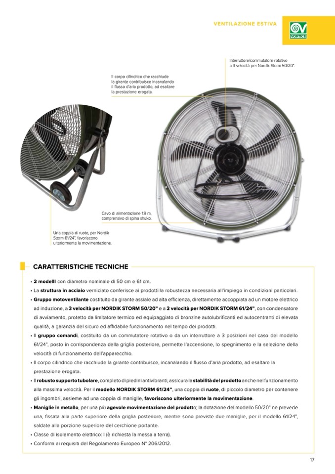 • Il corpo cilindrico che racchiude la girante contribuisce, incanalando il flusso d’aria prodotto, ad esaltare la