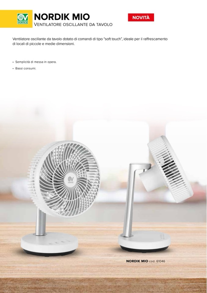 Ventilatore oscillante da tavolo dotato di comandi di tipo “soft touch”, ideale per il raffrescamento