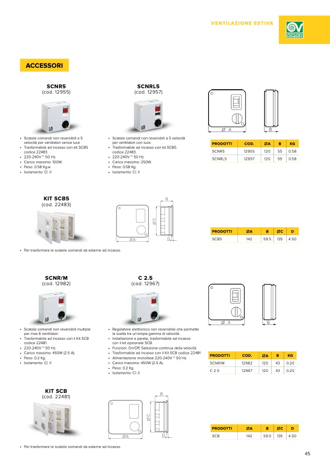 • Scatole comandi non reversibili a 5