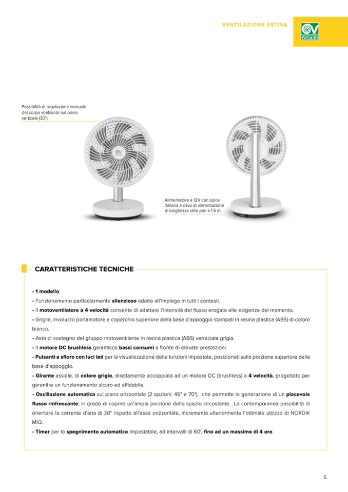 • Girante assiale, di colore grigio, direttamente accoppiata ad un motore DC (brushless) a 4 velocità, progettato per