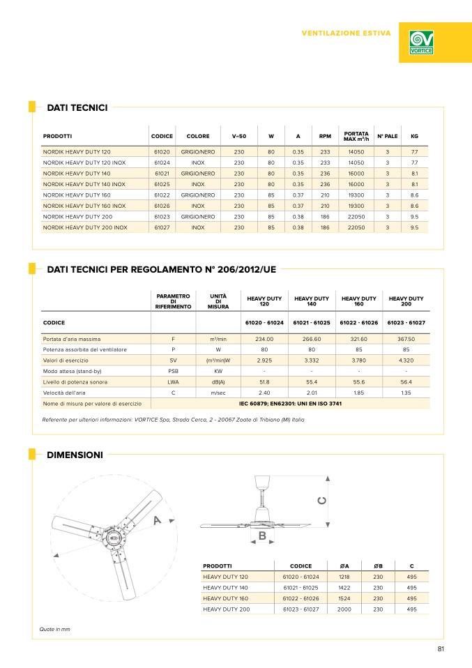 Referente per ulteriori informazioni: VORTICE Spa, Strada Cerca, 2 - 20067 Zoate di Tribiano (MI) Italia