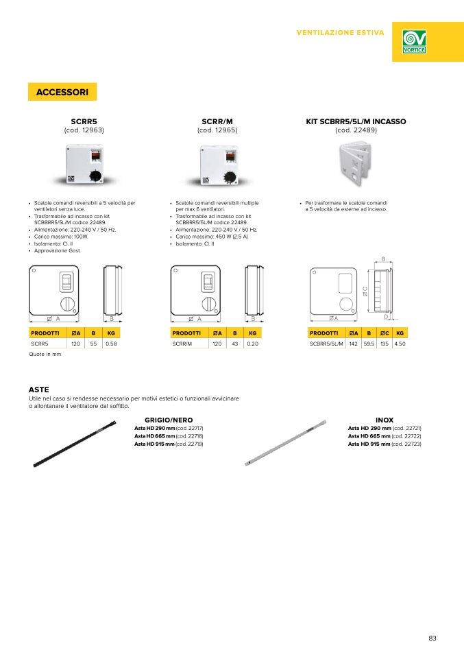 • Scatole comandi reversibili a 5 velocità per