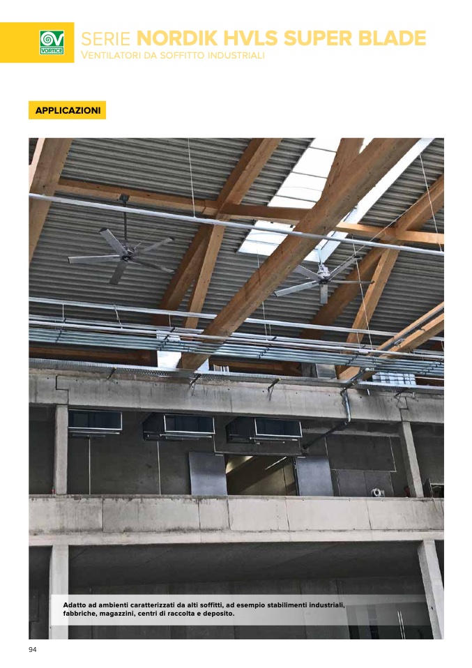 Adatto ad ambienti caratterizzati da alti soffitti, ad esempio stabilimenti industriali,