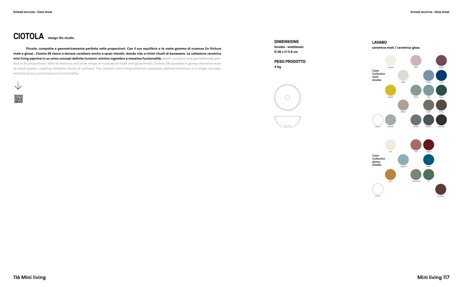 matt e gloss) , Ciotola 28 riesce a donare carattere anche a spazi ristretti, dando vita a intimi rituali di benessere. La collezione ceramica