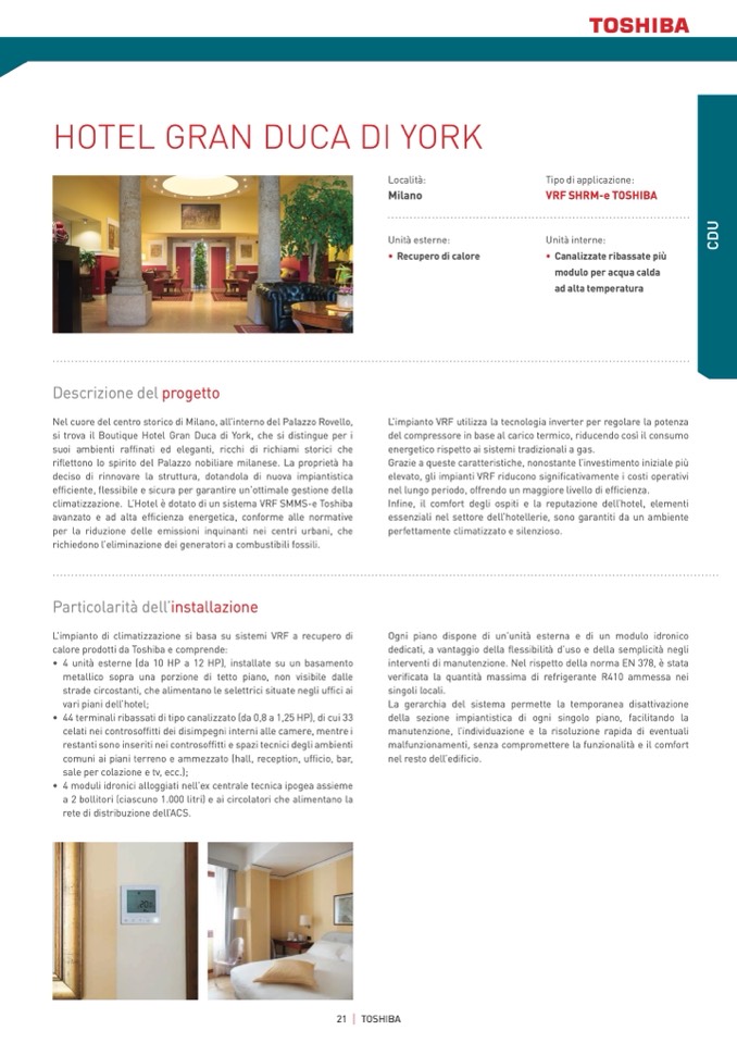 climatizzazione. L’Hotel è dotato di un sistema VRF SMMS-e Toshiba