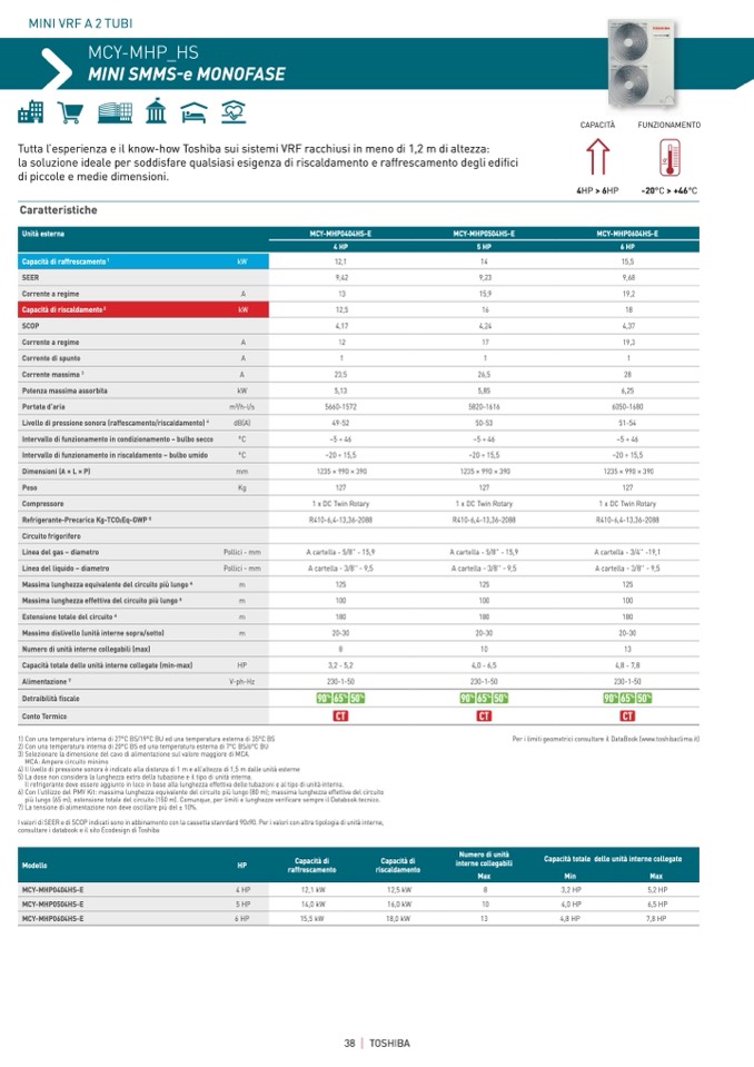 Per i limiti geometrici consultare il DataBook (www.toshibaclima.it)