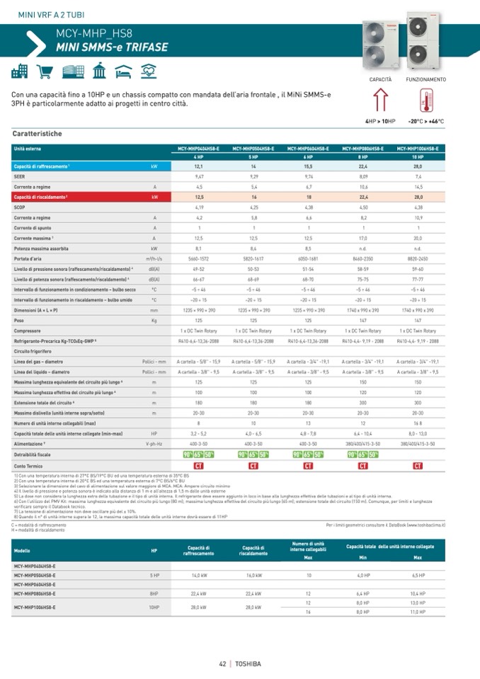 Per i limiti geometrici consultare il DataBook (www.toshibaclima.it)