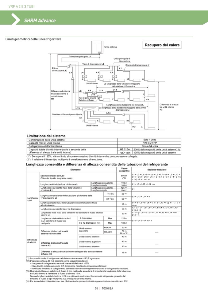 (*1): La quantità totale di refrigerante del sistema deve essere di 63,8 kg o meno.