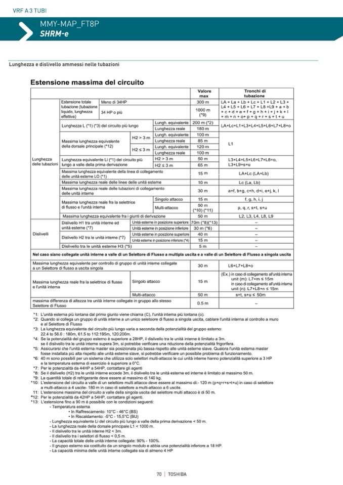 *4: Se la potenzialità del gruppo esterno è superiore a 28HP, il dislivello tra le unità interne è limitato a 3m.