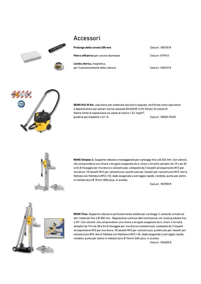 REMS Simplex 2. Supporto robusto e maneggevole per carotaggi fino a Ø 202 mm. Con utensili,