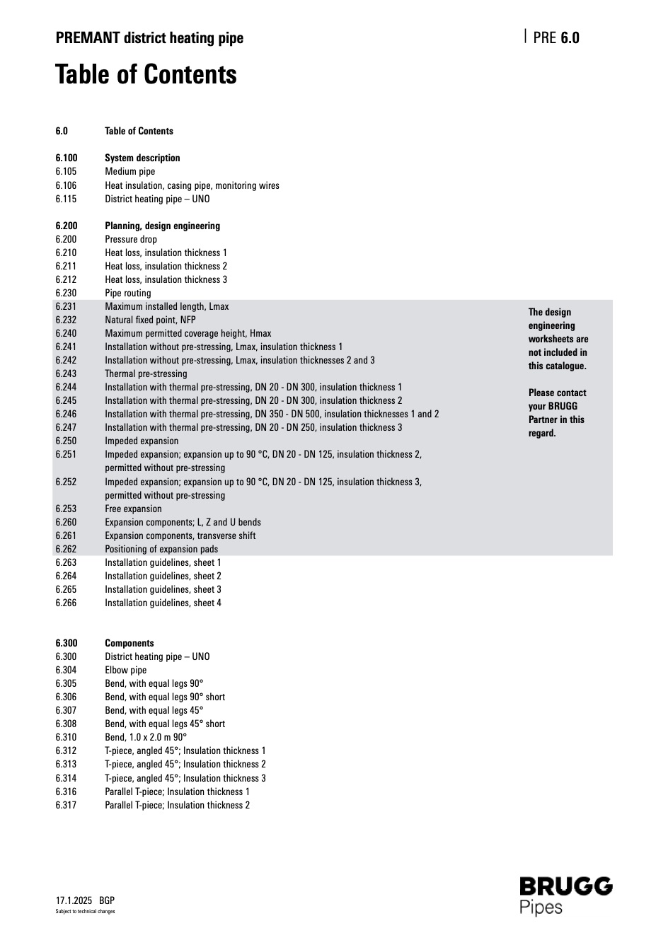 Brugg Pipes table of contents