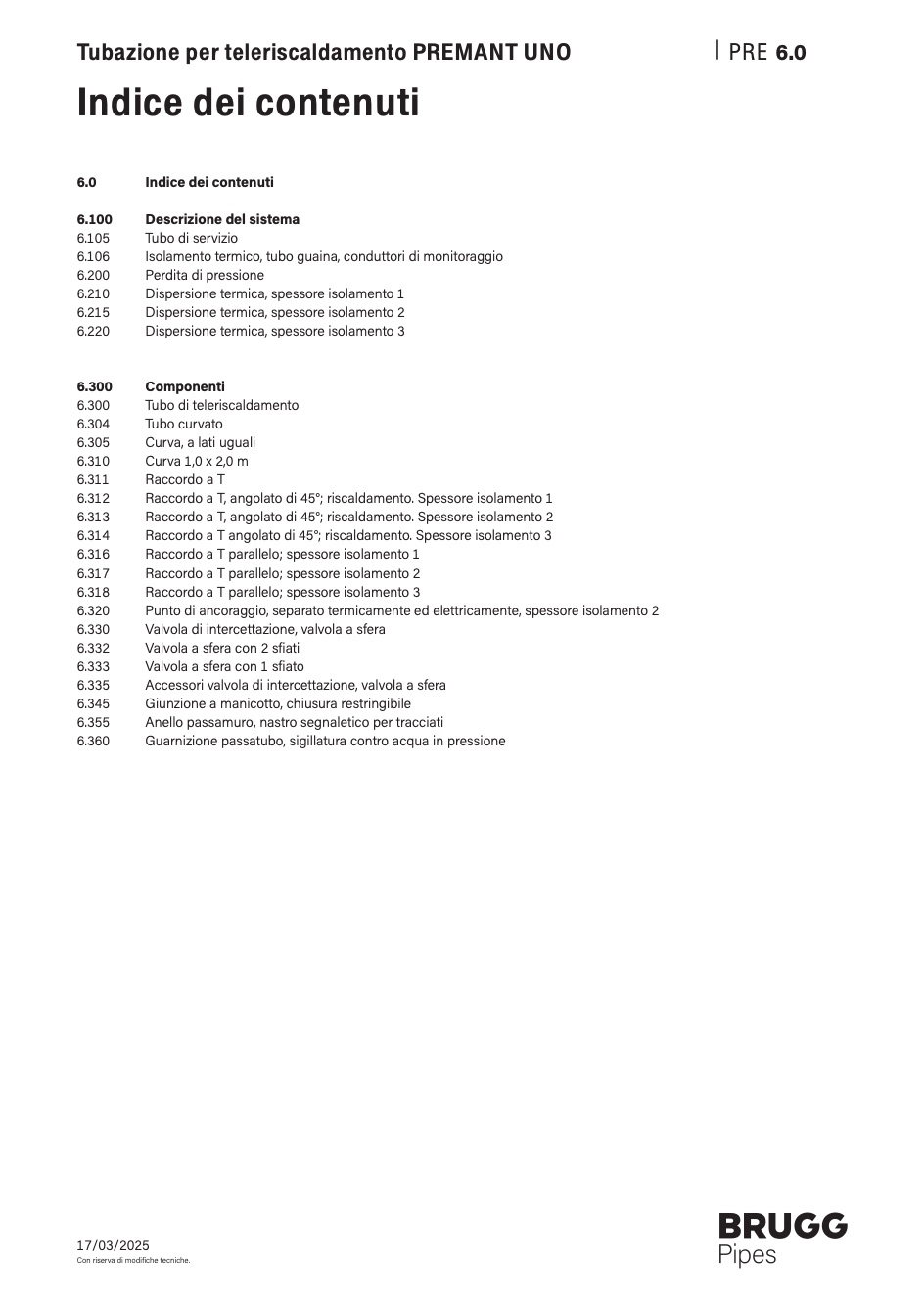 Brugg Pipes indice dei contenuti