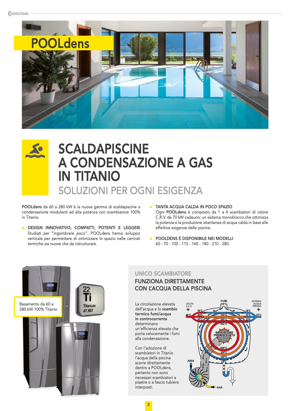 Cosmogas scaldapiscine a condensazione a gas in titanio