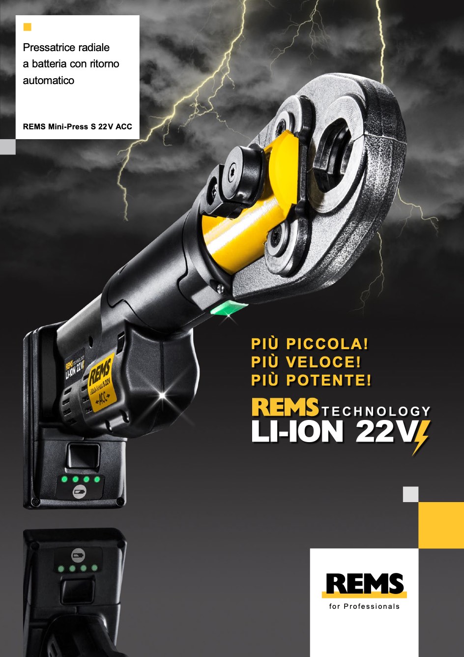 Rems rems mini-press s 22v acc – universale fino a ø 40 mm. leggerissima, piccolissima, maneggevole, superveloce.